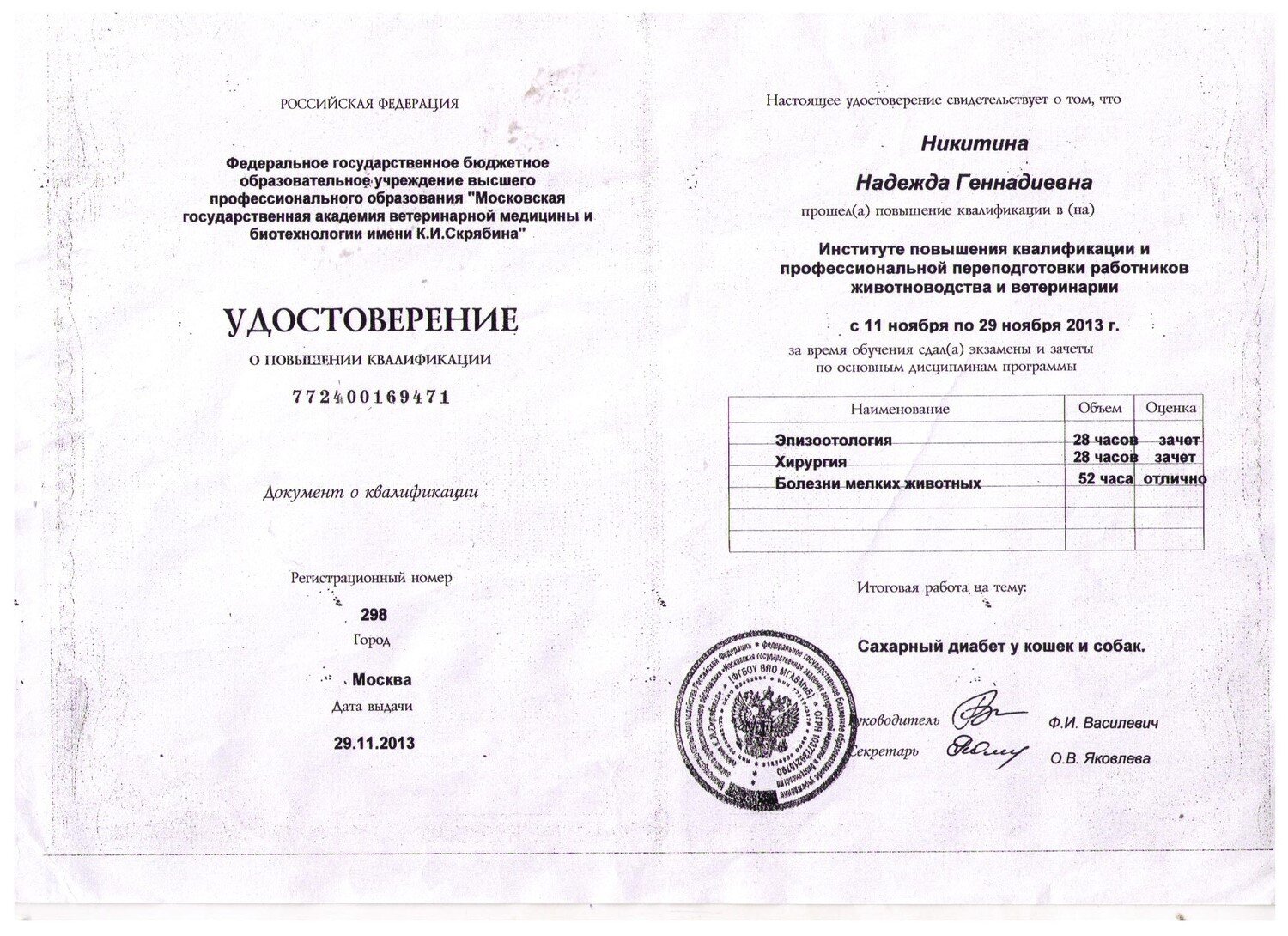 Потерпевшие! Может, объединиться и составить иск в суд, да такой иск, чтобы такие, как Брисюк, а так же ее «коллеги» унитазы чистили по месту получения образования, а не с живыми существами работали… Подумайте! Им только тараканов лечить с их знаниями, только в этом случае всем польза!!!